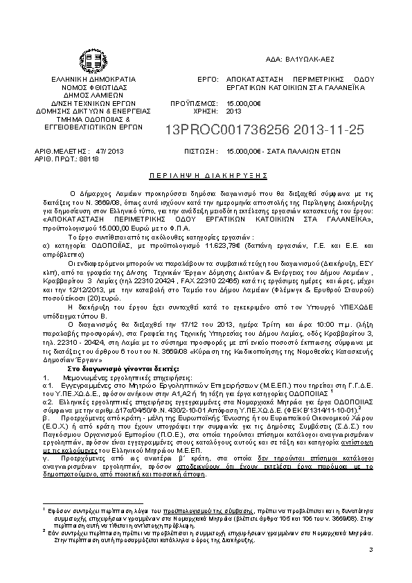 Αναζήτηση σε προκηρύξεις και συμβάσεις για: