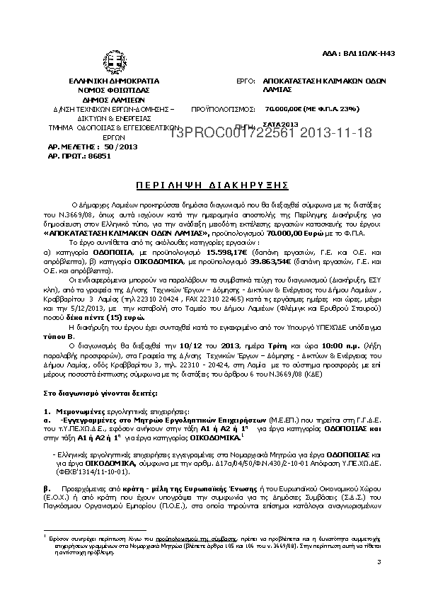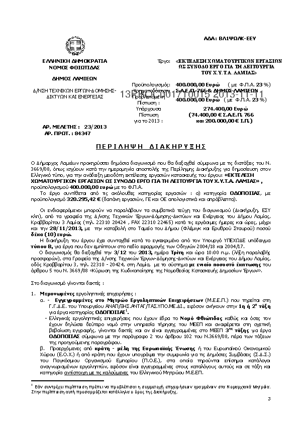 3. ΑΣΦΑΛΤΟΣΤΡΩΣΗ ΔΗΜΟΤΙΚΩΝ ΟΔΩΝ Δ.Ε. ΛΑΜΙΑΣ