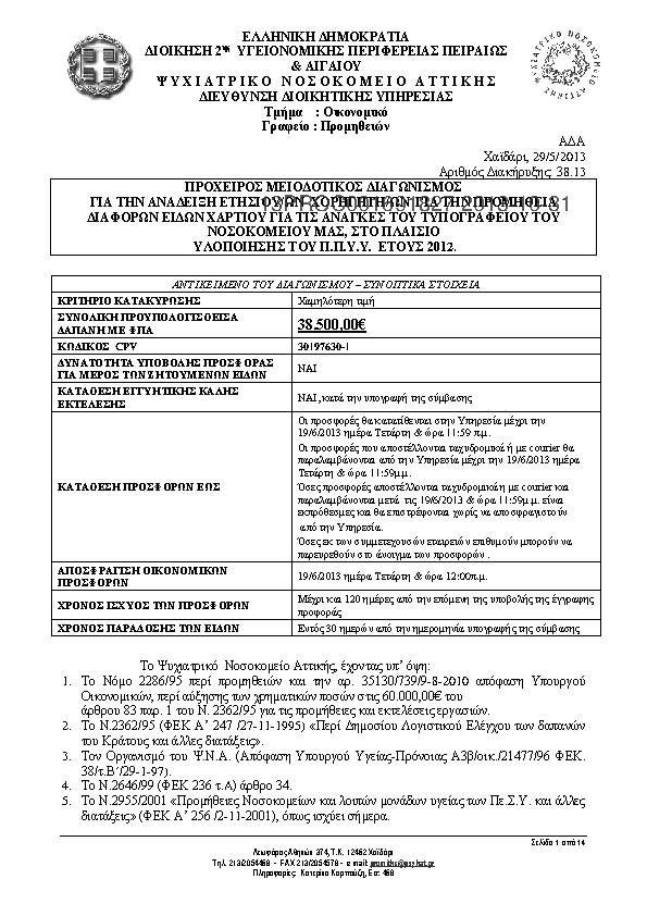 5. ΠΡΟΜΗΘΕΙΑ ΤΥΠΟΓΡΑΦΙΚΟΥ ΧΑΡΤΙΟΥ ΑΡΙΘΜ. ΔΙΚΗΡΥΞΗΣ 38.13