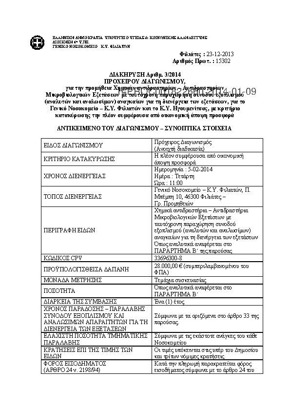 1. ΔΙΑΚΗΡΥΞΗ ΠΡΟΧΕΙΡΟΥ ΔΙΑΓΩΝΙΣΜΟΥ ΜΙΚΡΟΒΙΟΛΟΓΙΚΩΝ ΕΞΕΤΑΣΕΩΝ ΜΕ ΣΥΝΟΔΟ ΕΞΟΠΛΙΣΜΟ