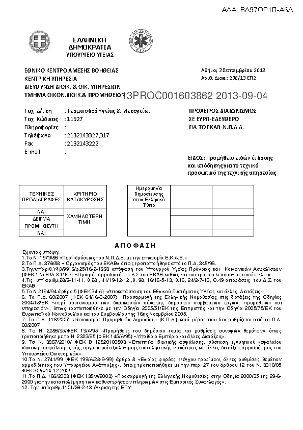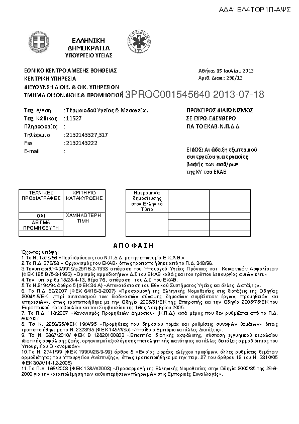 1. ΠΡΟΜΗΘΕΙΑ Η/Υ& ΠΕΡΙΦΕΡΕΙΑΚΩΝ ΓΙΑ ΤΗΝ ΚΥ ΚΑΙ ΤΑ ΠΑΡΑΡΤΗΜΑΤΑ ΤΟΥ ΕΚΑΒ