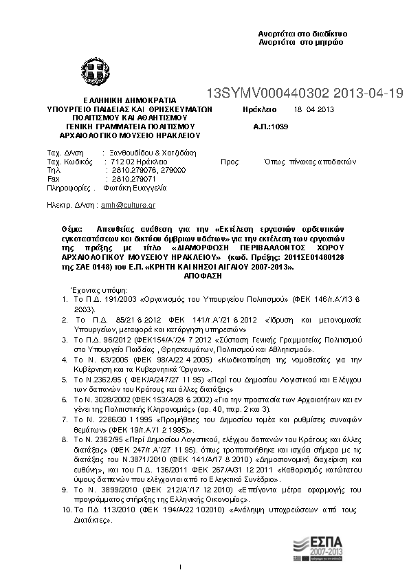 Αναζήτηση σε προκηρύξεις και συμβάσεις για: