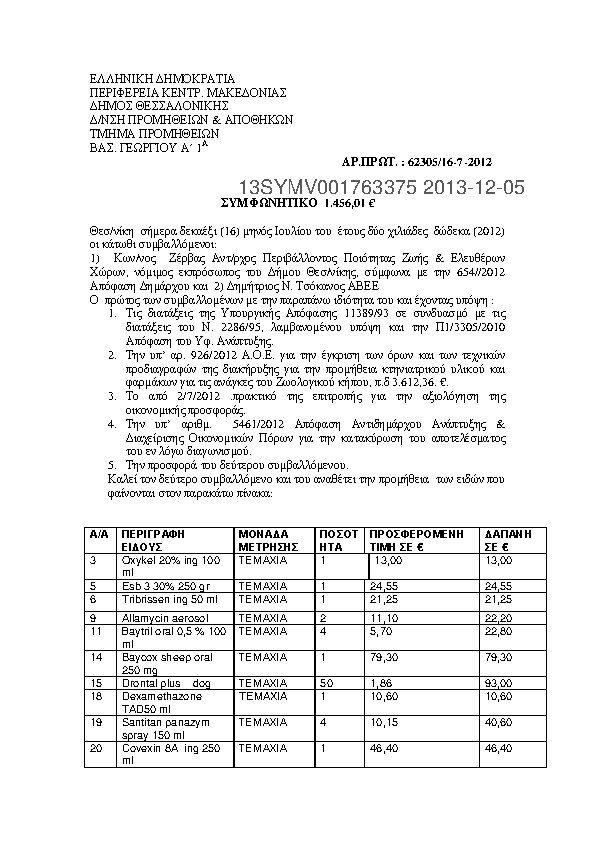 6. ΠΡΟΜΗΘΕΙΑ ΚΤΗΝΙΑΤΡΙΚΟΥ ΥΛΙΚΟΥ ΚΑΙ ΦΑΡΜΑΚΩΝ ΓΙΑ ΤΙΣ ΑΝΑΓΚΕΣ ΤΩΝ ΖΩΩΝ ΤΟΥ ΖΩΟΛΟΓΙΚΟΥ ΚΗΠΟΥ