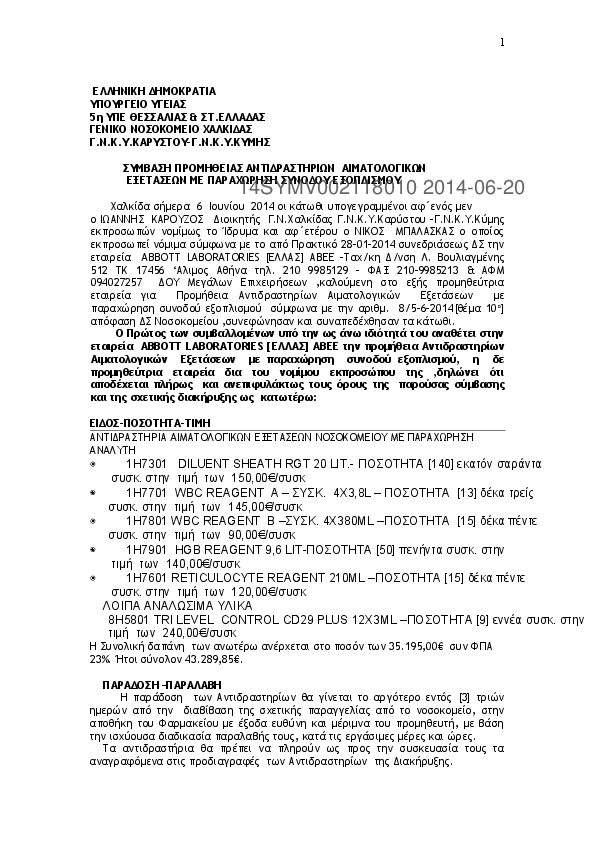 7. ΣΥΜΒΑΣΗ ΠΡΟΜΗΘΕΙΑΣ ΑΝΤΙΔΡΑΣΤΗΡΙΩΝ ΕΞΕΤΑΣΕΩΝ ΑΙΜΟΔΟΣΙΑΣ