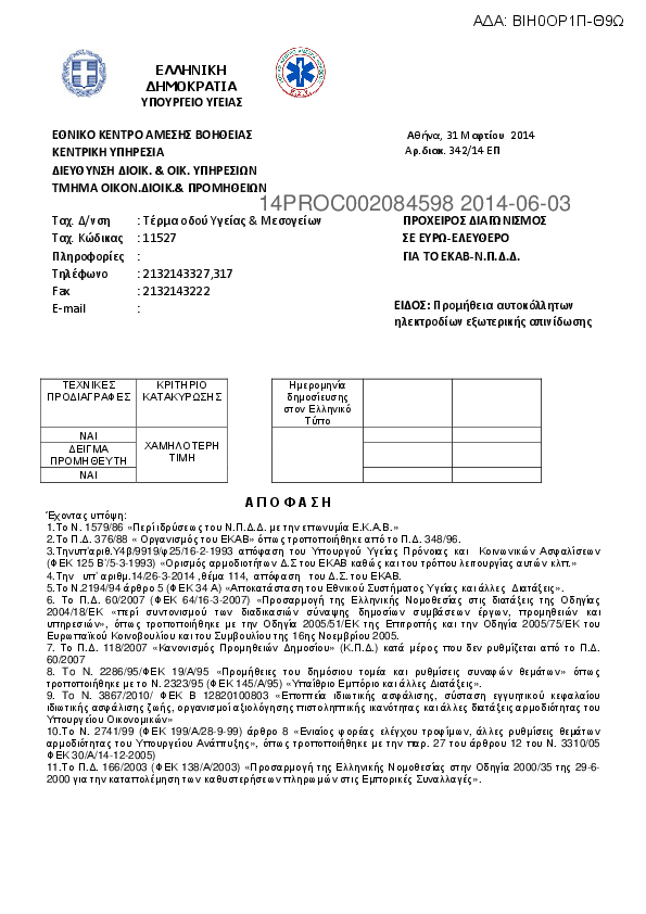 Αναζήτηση σε προκηρύξεις και συμβάσεις για:  Ζωής
