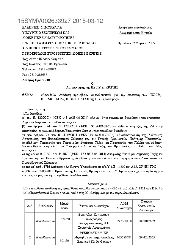 9. ΑΠΕΥΘΕΙΑΣ ΑΝΑΘΕΣΗ ΠΡΟΜΗΘΕΙΑΣ ΑΝΤΑΛ/ΚΩΝ ΤΩΝ ΠΣ1276, ΠΣ1290, ΠΣ1157, ΠΣ3411, ΠΣ1228 ΤΗΣ ΠΥ ΙΕΡΑΠΕΤΡΑΣ