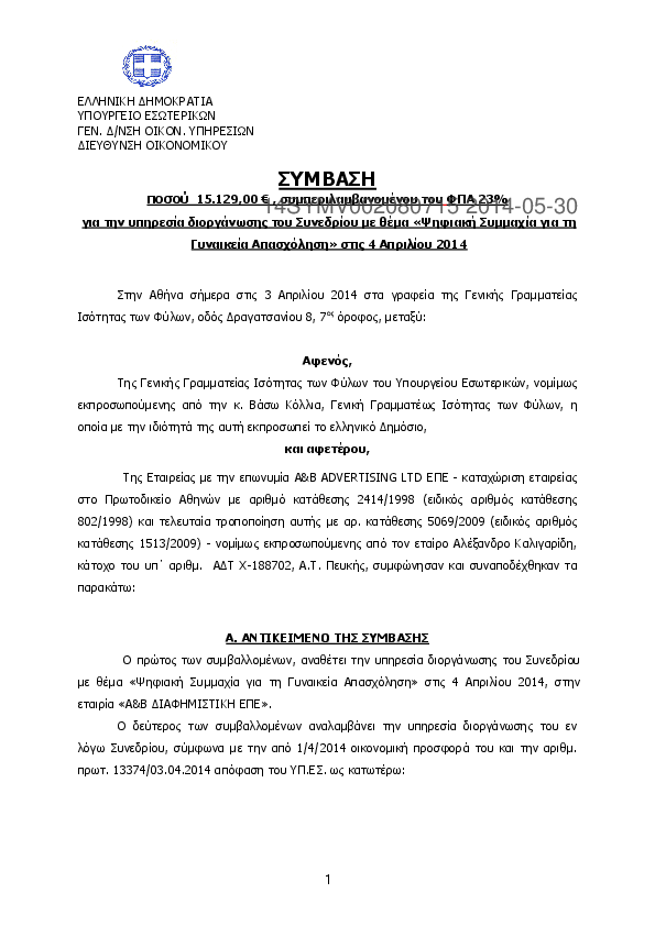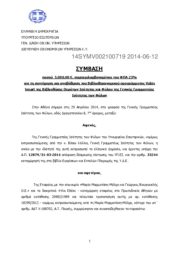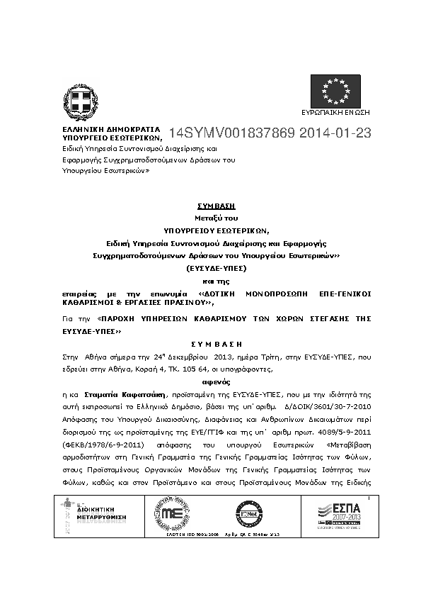 1. Απόφαση ανάθεσης σύμβασης «ΥΠΗΡΕΣΙΕΣ ΚΑΘΑΡΙΣΜΟΥ ΤΩΝ ΧΩΡΩΝ ΣΤΕΓΑΣΗΣ ΤΗΣ ΕΥΣΥΔΕ
