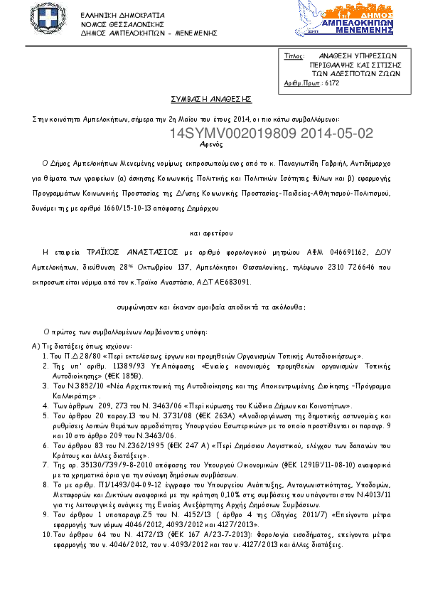 1. ΑΝΑΘΕΣΗ ΤΩΝ ΥΠΗΡΕΣΙΩΝ ΠΕΡΙΘΑΛΨΗΣ ΚΑΙ ΣΙΤΙΣΗΣ ΤΩΝ ΑΔΕΣΠΟΤΩΝ ΖΩΩΝ (ΚΑΤΗΓΟΡΙΑ Β)