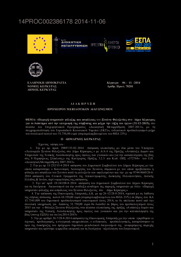 5. Παροχή Υπηρεσιών Φύλαξης-Ασφάλειας του Ξενώνα Φιλοξενίας στο Δήμο Κέρκυρας