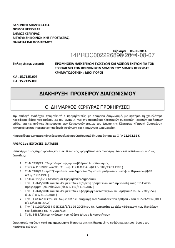 Αναζήτηση σε προκηρύξεις και συμβάσεις για:
