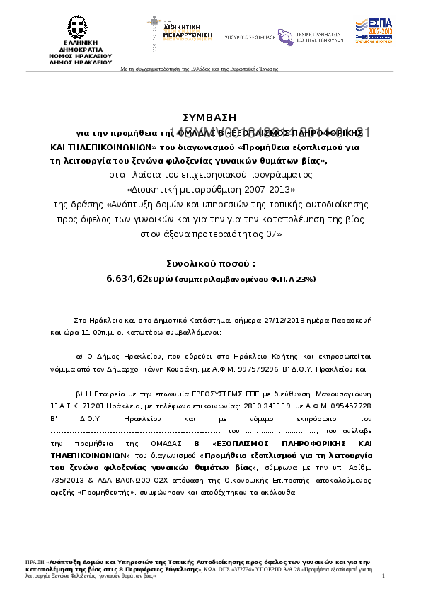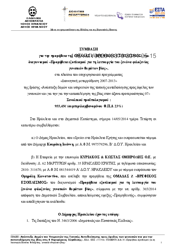 3. ΣΥΜΒ ΟΜΑΔ ΣΤ "ΠΡΟΜΗΘΕΙΑ ΕΞΟΠΛΙΣΜΟΥ ΓΙΑ ΤΗ ΛΕΙΤ. ΤΟΥ ΞΕΝΩΝΑ ΦΙΛΟΞΕΝΙΑΣ ΓΥΝΑΙΚΩΝ ΘΥΜΑΤΩΝ ΒΙΑΣ