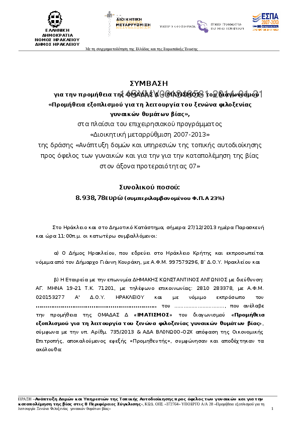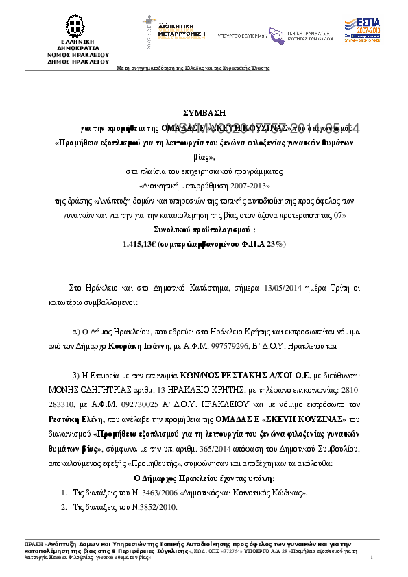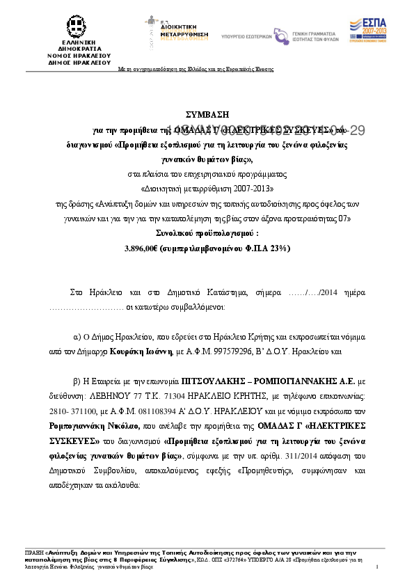 4. ΣΥΜΒ ΟΜΑΔ Β "ΠΡΟΜΗΘΕΙΑ ΕΞΟΠΛΙΣΜΟΥ ΓΙΑ ΤΗ ΛΕΙΤ. ΤΟΥ ΞΕΝΩΝΑ ΦΙΛΟΞΕΝΙΑΣ ΓΥΝΑΙΚΩΝ ΘΥΜΑΤΩΝ ΒΙΑΣ