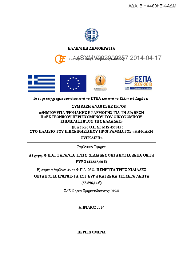 1. Ανάθεση του έργου «Δημιουργία Ψηφιακής Εφαρμογής για τη διάθεση Ηλεκτρονικού Περιεχομένου του Οικον
