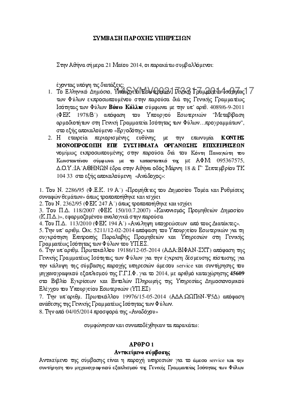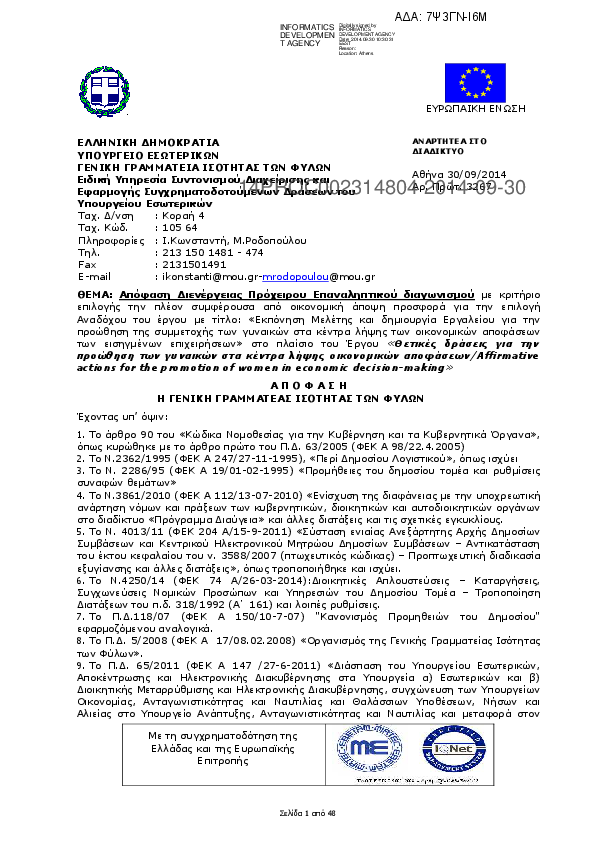 Αναζήτηση σε προκηρύξεις και συμβάσεις για: