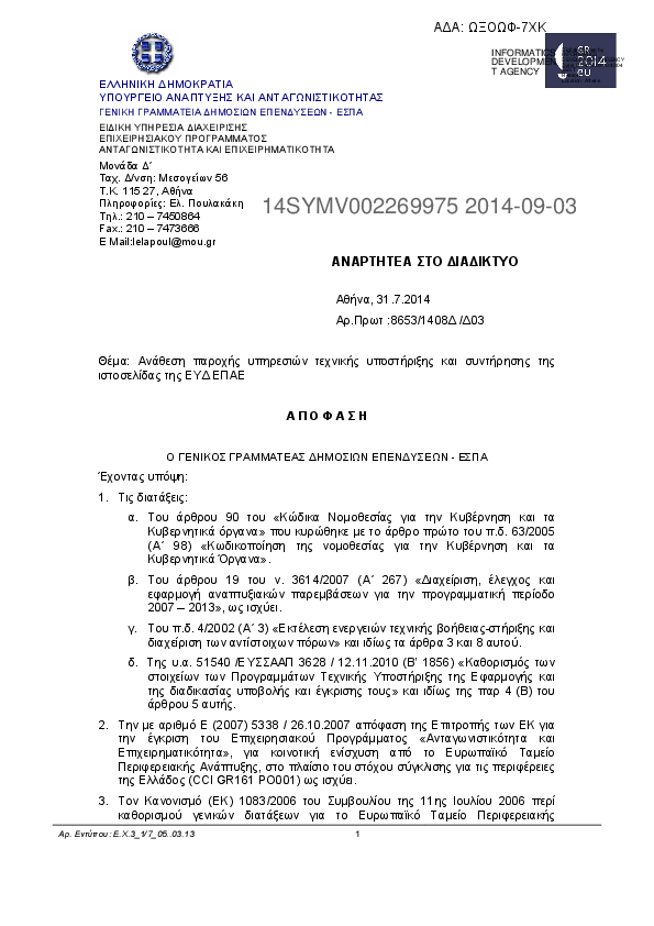 6. 1409_ΩΞΟΩΦ-7ΧΚ_ΑΝΑΘΕΣΗ ΠΑΡΟΧΗΣ ΥΠΗΡΕΣΙΩΝ ΤΕΧΝΙΚΗΣ ΥΠΟΣΤΗΡΙΞΗΣ ΚΑΙ ΣΥΝΤΗΡΗΣΗΣ ΤΗΣ ΙΣΤΟΣΕΛΙΔΑΣ ΤΗΣ ΕΥΔ