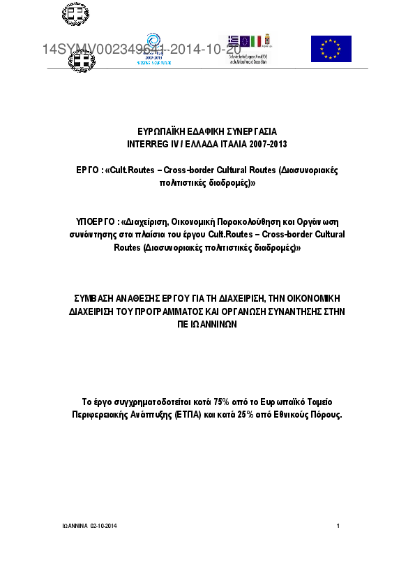 1. Διαχείριση, Οικονομική Παρακολούθηση και Οργάνωση συνάντησης στα πλαίσια του έργου Cult.Routes