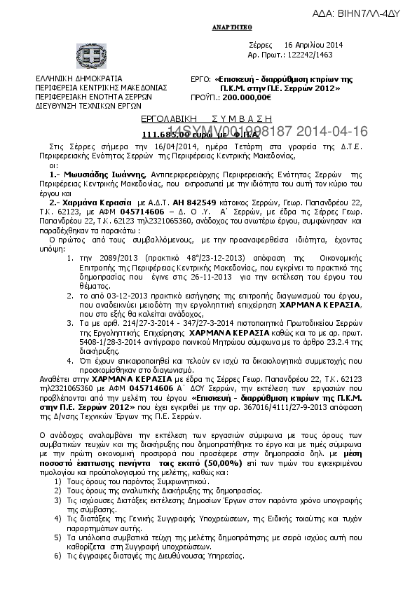 2. «ΕΠΙΣΚΕΥΗ - ΔΙΑΡΡΥΘΜΙΣΗ ΚΤΙΡΙΩΝ ΤΗΣ Π.Κ.Μ. ΣΤΗΝ Π.Ε. ΣΕΡΡΩΝ 2012»