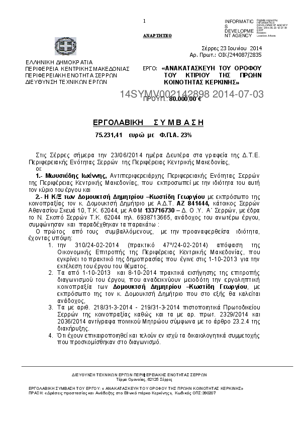 3. ΣΥΜΒΑΣΗ ΕΡΓΟΥ: «ΑΝΑΚΑΤΑΣΚΕΥΗ ΤΟΥ ΟΡΟΦΟΥ ΤΟΥ ΚΤΙΡΙΟΥ ΤΗΣ ΠΡΩΗΝ ΚΟΙΝΟΤΗΤΑΣ ΚΕΡΚΙΝΗΣ»