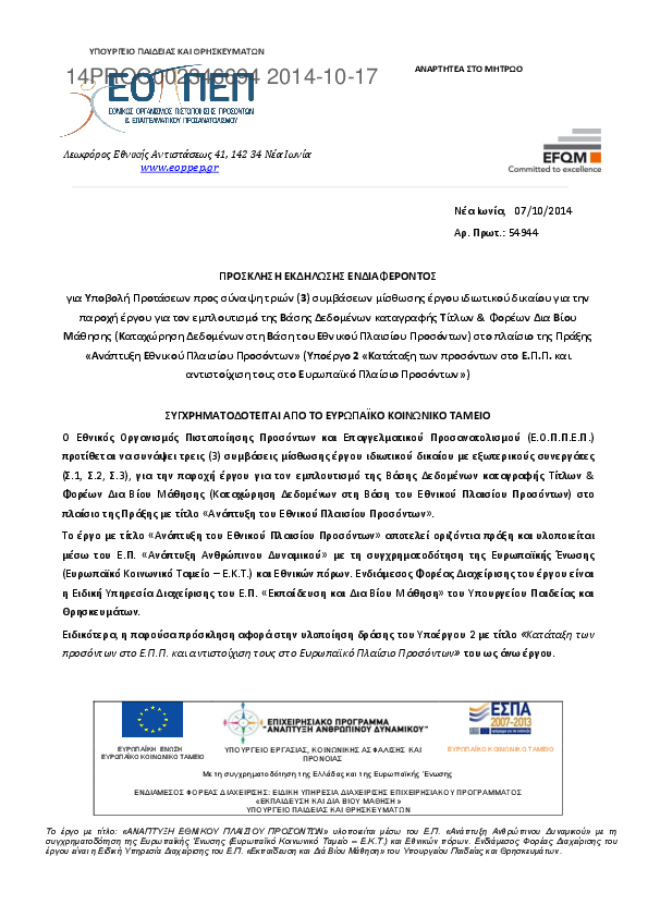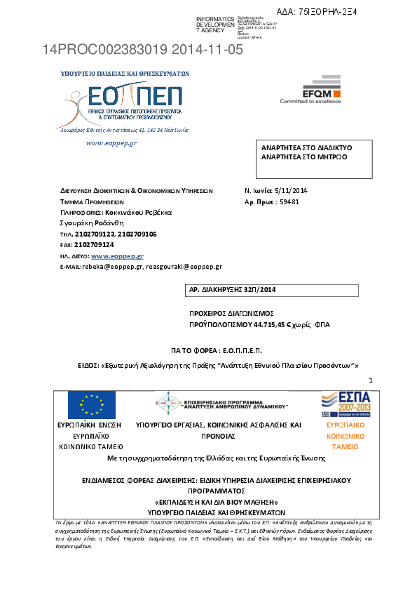 Αναζήτηση σε προκηρύξεις και συμβάσεις για:  Κοινωνικό