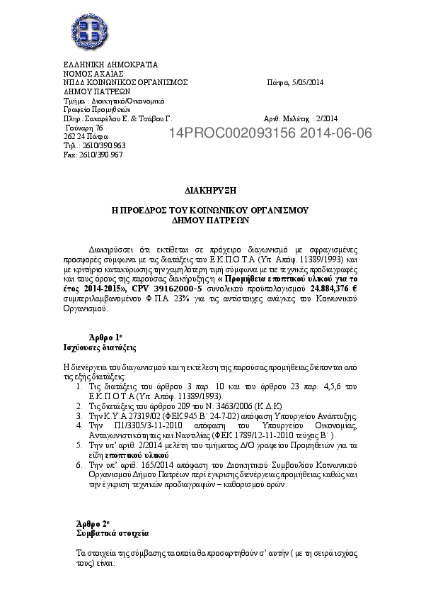 6. Απόφαση ΔΣ 336/2014 ΔΙΑΚΗΡΥΞΗ ΠΡΟΧΕΙΡΟΥ ΔΙΑΓΩΝΙΣΜΟΥ ΠΡΟΓΡΑΜΜΑΤΟΣ NEBSOC