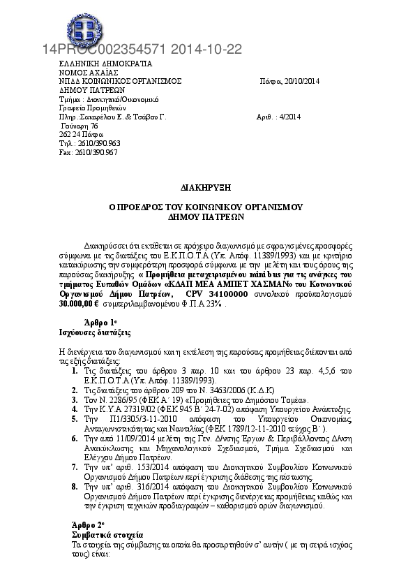 4. ΠΡΟΧΕΙΡΟΣ ΔΙΑΓΩΝΙΣΜΟΣ ΓΙΑ ΤΗΝ ΠΡΟΜΗΘΕΙΑ ΜΕΤΑΧΕΙΡΙΣΜΕΝΟΥ MINI BUS
