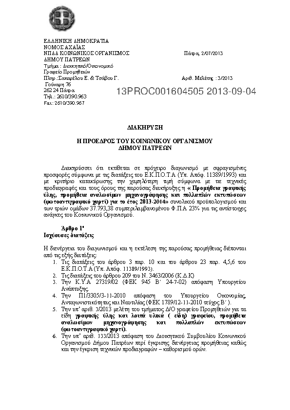 5. ΔΙΑΚΗΡΥΞΗ ΠΡΟΜΗΘΕΙΑΣ ΓΡΑΦΙΚΗΣ ΥΛΗΣ, ΑΝΑΛΩΣΙΜΩΝ ΜΗΧΑΝΟΓΡΑΦΗΣΗΣ, ΦΩΤΟΑΝΤΙΓΡΑΦΙΚΟ ΧΑΡΤΙ