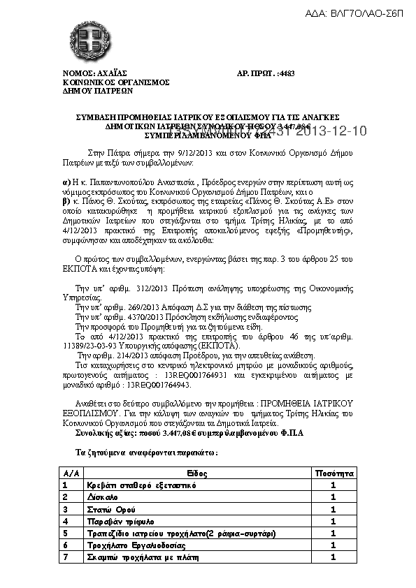 7. ΣΥΜΒΑΣΗ ΠΡΟΜΗΘΕΙΑΣ ΙΑΤΡΙΚΟΥ ΕΞΟΠΛΙΣΜΟΥ