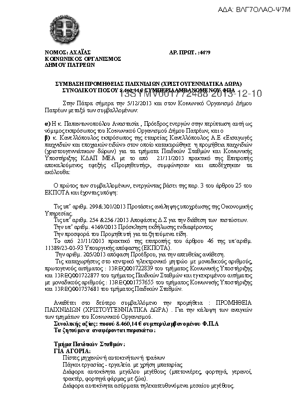 6. ΣΥΜΒΑΣΗ ΓΙΑ ΠΡΟΜΗΘΕΙΑ ΠΑΙΧΝΙΔΙΩΝ (ΧΡΙΣΤΟΥΓΕΝΝΙΑΤΙΚΑ ΔΩΡΑ)