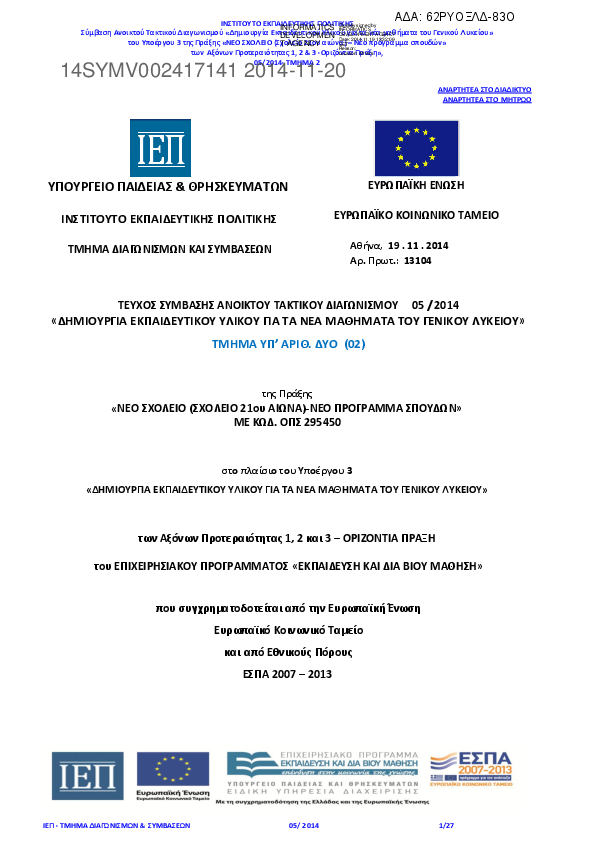 1. ΤΕΥΧΟΣ ΣΥΜΒΑΣΗΣ ΑΝΟΙΚΤΟΥ ΤΑΚΤΙΚΟΥ ΔΙΑΓΩΝΙΣΜΟΥ 05 / 2014 TMHMA 2