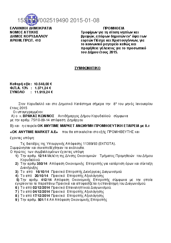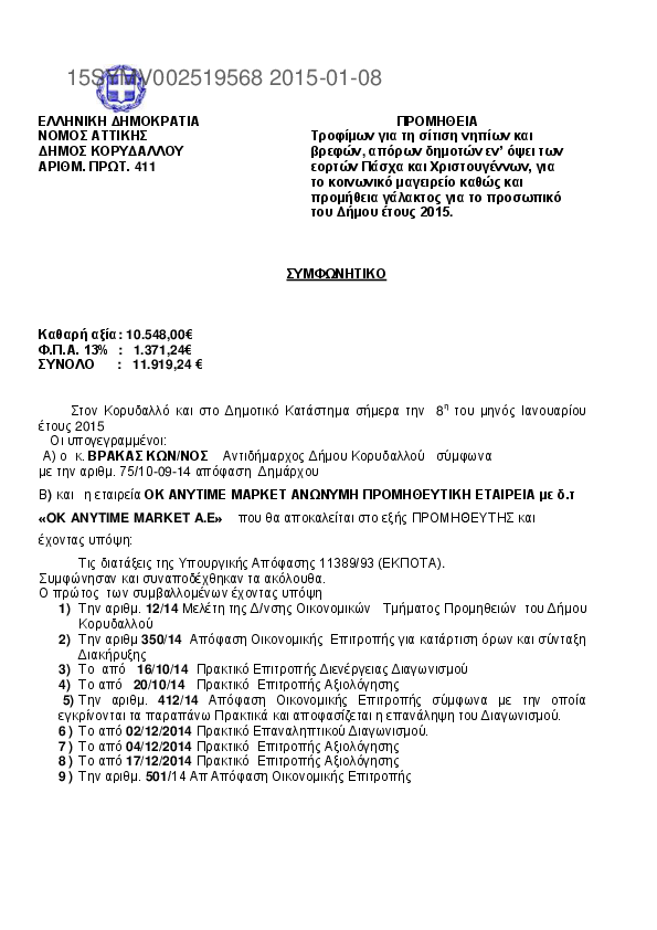 3. ΣΥΜΦΩΝΗΤΙΚΟ ΠΡΟΜΗΘΕΙΑΣ ΤΡΟΦΙΜΩΝ ... "ΕΙΔΩΝ ΑΠΟΡΩΝ ΕΝ ΟΨΕΙ ΤΩΝ ΕΟΡΤΩΝ ΤΩΝ ΧΡΙΣΤΟΥΓΕΝΝΩΝ" ΕΤΟΥΣ 2015