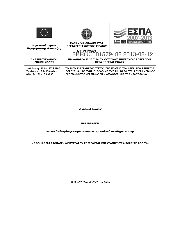 3. ΠΡΟΜΗΘΕΙΑ ΕΞΟΠΛΙΣΜΟΥ ΚΥΤΤΑΡΟΥ ΕΠΕΙΓΟΥΣΑΣ ΕΠΕΚΤΑΣΗΣ ΧΥΤΑ ΒΟΡΕΙΑΣ ΡΟΔΟΥ