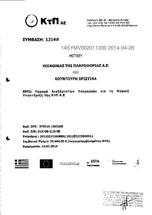 2. Παροχή Ανεξάρτητων Υπηρεσιών Νομικής Υποστήριξης της ΚτΠ Α.Ε.