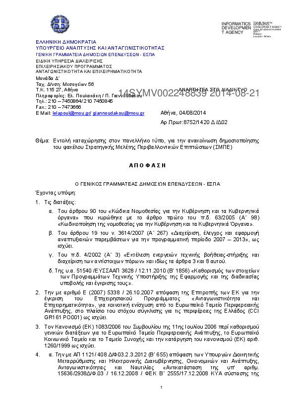 6. 1409_Ψ3ΣΚΦ-ΩΗΥ_ΕΝΤΟΛΗ ΚΑΤΑΧΩΡΗΣΗΣ ΣΤΟΝ ΠΑΝΕΛΛΗΝΙΟ ΤΥΠΟ ΓΙΑ ΤΗΝ ΑΝΑΚΟΙΝΩΣΗ ΔΗΜΟΣΙΟΠΟΙΗΣΗΣ ΤΟΥ ΦΑΚΕΛΟΥ