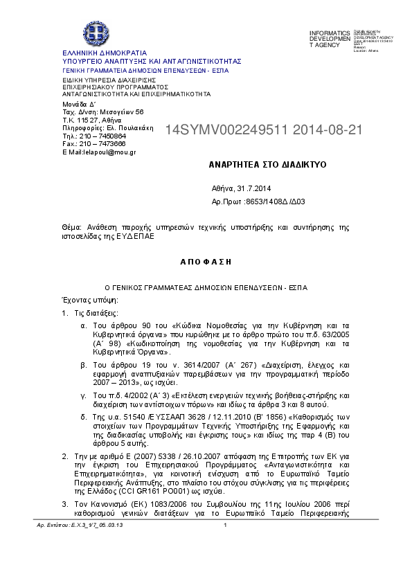 5. 1409_ΩΞΟΩΦ-7ΧΚ_ΑΝΑΘΕΣΗ ΠΑΡΟΧΗΣ ΥΠΗΡΕΣΙΩΝ ΤΕΧΝΙΚΗΣ ΥΠΟΣΤΗΡΙΞΗΣ ΚΑΙ ΣΥΝΤΗΡΗΣΗΣ ΤΗΣ ΙΣΤΟΣΕΛΙΔΑΣ ΤΗΣ ΕΥΔ