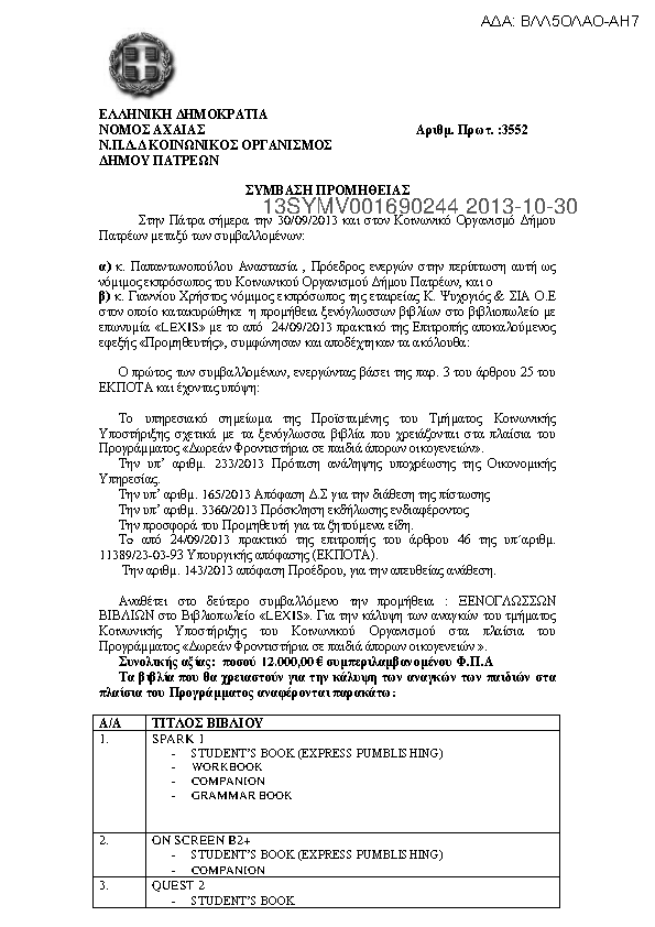 8. ΣΥΜΒΑΣΗ ΓΙΑ ΠΡΟΜΗΘΕΙΑ ΞΕΝΟΓΛΩΣΣΩΝ ΒΙΒΛΙΩΝ