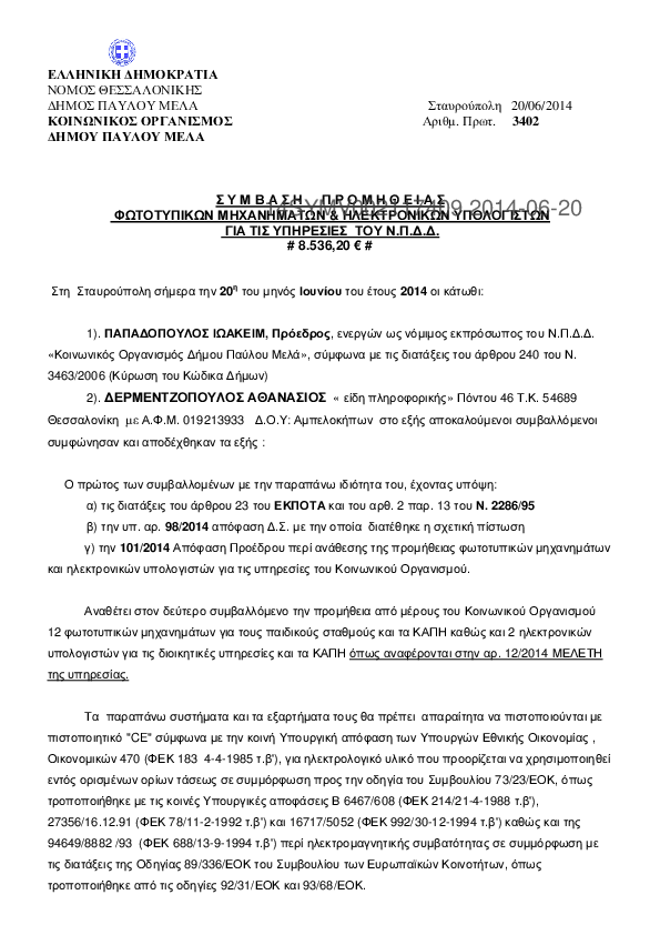 10. ΠΡΟΜΗΘΕΙΑ Η/Υ & ΦΩΤΟΤΥΠΙΚΩΝ ΜΗΧΑΝΗΜΑΤΩΝ ΓΙΑ ΤΙΣ ΥΠΗΡΕΣΙΕ ΤΟΥ ΚΟΙΝΩΝΙΚΟΥ ΟΡΓΑΝΙΣΜΟΥ ΔΗΜΟΥ ΠΑΥΛΟΥ ΜΕΛΑ