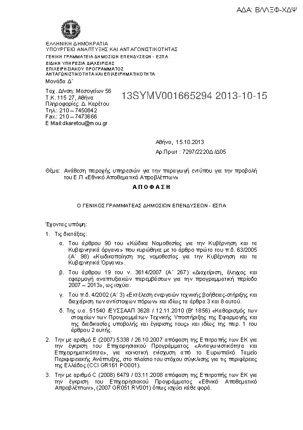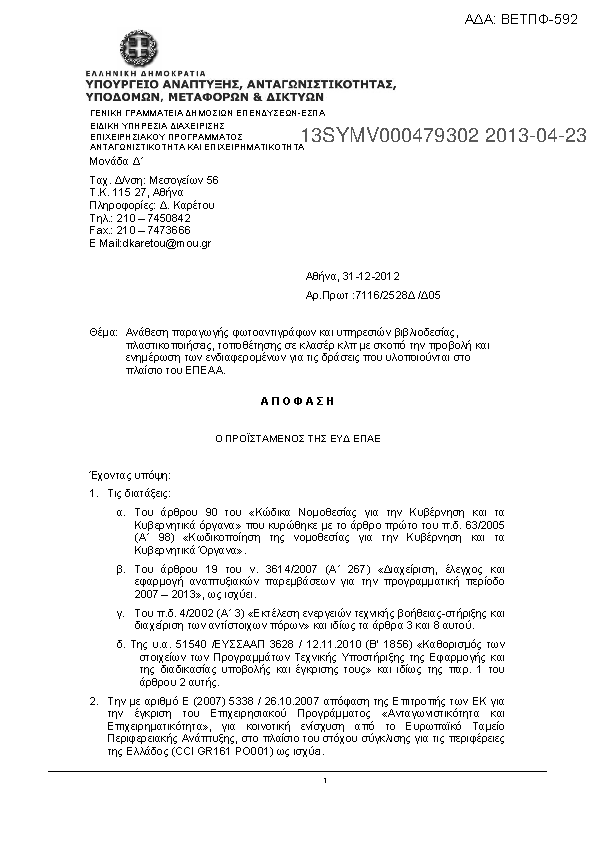 Αναζήτηση σε προκηρύξεις και συμβάσεις για:
