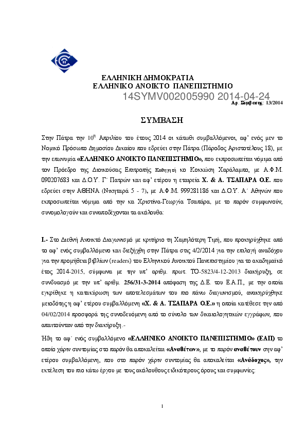 1. Προμήθεια βιβλίων (Readers) που διανέμονται στους φοιτητές του ΕΑΠ για το ακ. έτος 2014-2015