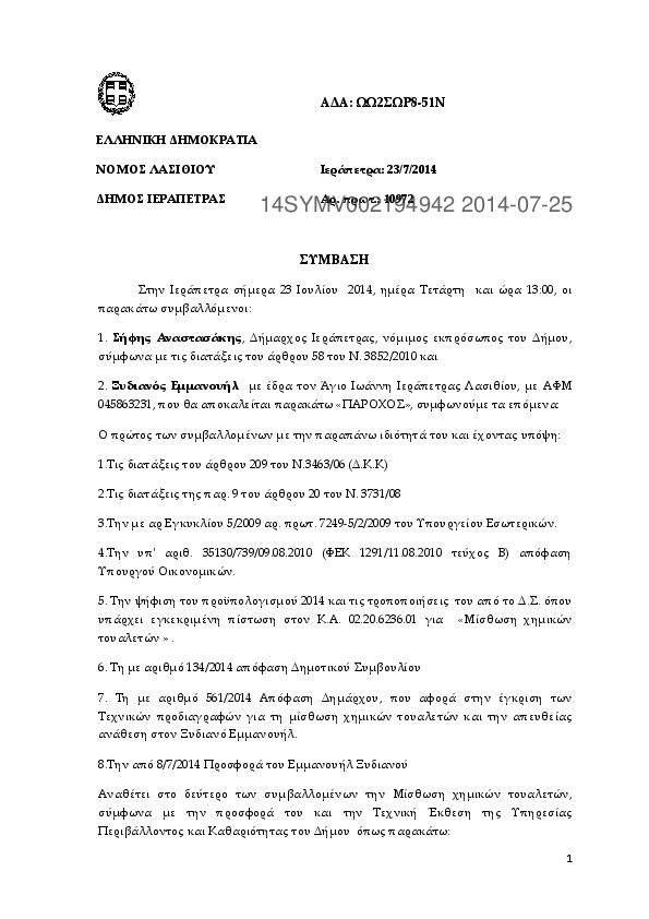 2. ΑΝΑΘΕΣΗ ΕΡΓΟΥ " ΨΕΚΑΣΜΟΣ ΕΛΑΙΟΔΕΝΤΡΩΝ ΚΑΤΑ ΤΟΥ ΔΑΚΟΥ ΕΤΟΥΣ 2014 Π.Ε.Λ"