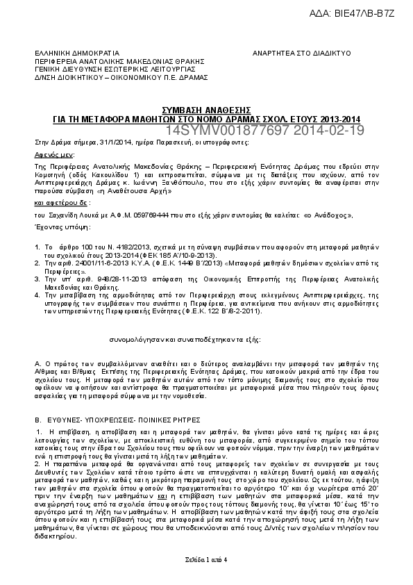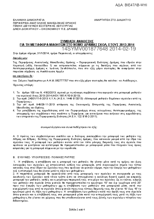 10. ΣΥΜΒΑΣΗ ΑΝΑΘΕΣΗΣ ΜΕΤΑΦΟΡΑΣ ΜΑΘΗΤΩΝ ΣΧΟΛ. ΕΤΟΥΣ 2013-14