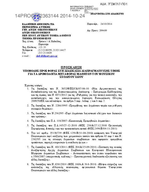9. Πρόσκληση υποβολής προσφορών στη διαδικασία Διαπραγμάτευσης μεταφ μαθητων Μουσ. Σχολείου Ιλίου