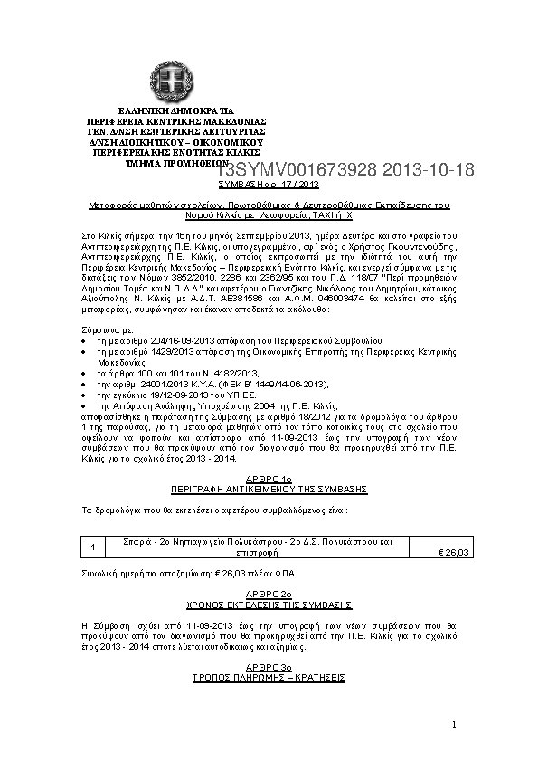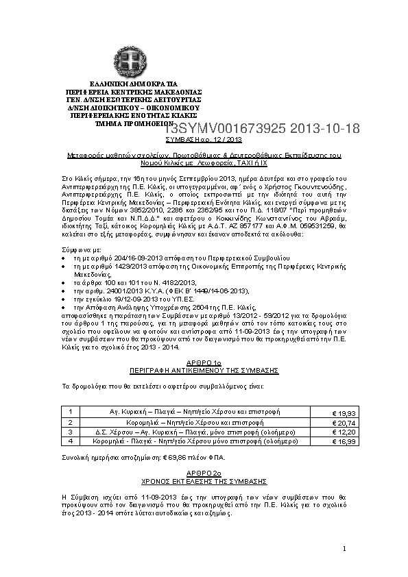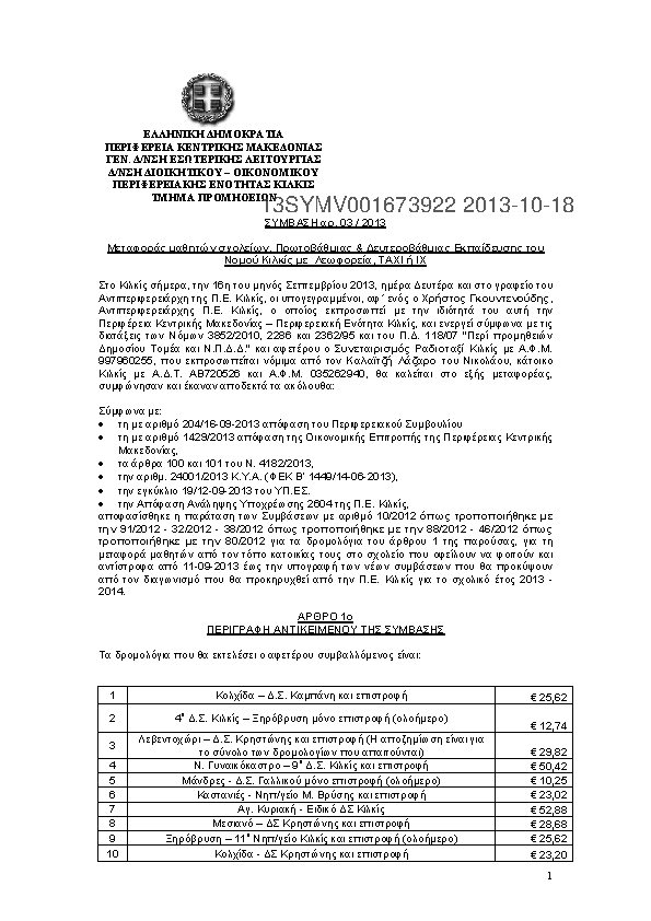 3. ΣΥΜΒΑΣΗ ΜΕΤΑΦΟΡΑΣ ΜΑΘΗΤΩΝ, ΣΧΟΛΕΙΩΝ ΠΡΩΤΟΒΑΘΜΙΑΣ ΚΑΙ ΔΕΥΤΕΡΟΒΑΘΜΙΑΣ ΕΚΠΑΙΔΕΥΣΗΣ ΤΟΥ ΝΟΜΟΥ ΚΙΛΚΙΣ