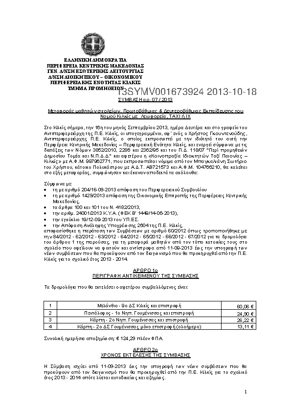 7. ΣΥΜΒΑΣΗ ΜΕΤΑΦΟΡΑΣ ΜΑΘΗΤΩΝ, ΣΧΟΛΕΙΩΝ ΠΡΩΤΟΒΑΘΜΙΑΣ ΚΑΙ ΔΕΥΤΕΡΟΒΑΘΜΙΑΣ ΕΚΠΑΙΔΕΥΣΗΣ ΤΟΥ ΝΟΜΟΥ ΚΙΛΚΙΣ