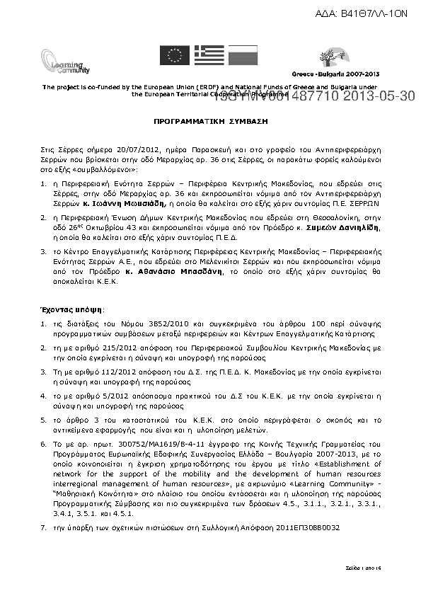 10. ΠΡΟΓΡΑΜΜΑΤΙΚΗ ΣΥΜΒΑΣΗ ΓΙΑ ΤΗΝ ΥΛΟΠΟΙΗΣΗ ΠΕΝΤΕ ΜΕΛΕΤΩΝ ΣΤΟ ΠΛΑΙΣΙΟ ΤΟΥ ΕΡΓΟΥ ΜΑΘΗΣΙΑΚΗ ΚΟΙΝΟΤΗΤΑ