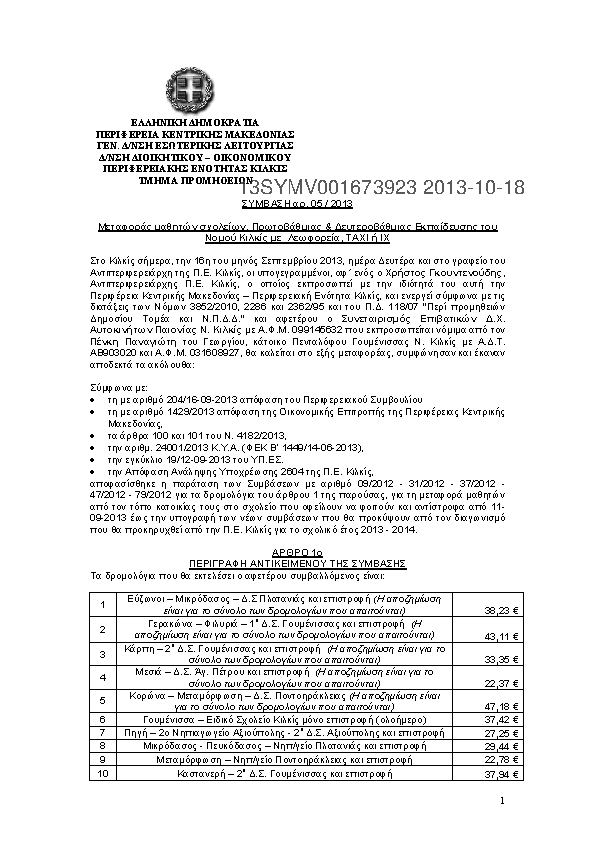 5. ΣΥΜΒΑΣΗ ΜΕΤΑΦΟΡΑΣ ΜΑΘΗΤΩΝ, ΣΧΟΛΕΙΩΝ ΠΡΩΤΟΒΑΘΜΙΑΣ ΚΑΙ ΔΕΥΤΕΡΟΒΑΘΜΙΑΣ ΕΚΠΑΙΔΕΥΣΗΣ ΤΟΥ ΝΟΜΟΥ ΚΙΛΚΙΣ