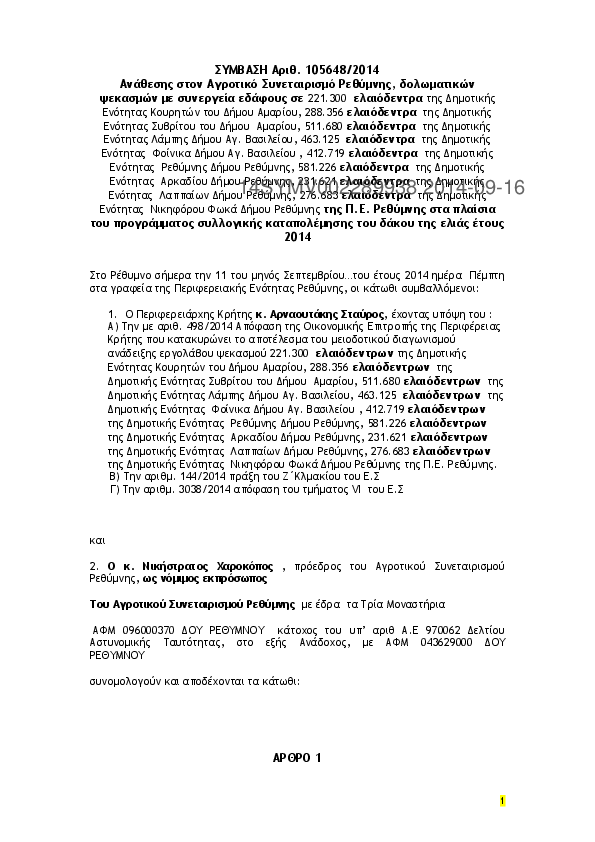 5. Ανάδειξη εργολάβων για τον από εδάφους ψεκασμό ελαιοδένδρων για τον δάκο 2014 ΠΕ Ηρακλειου