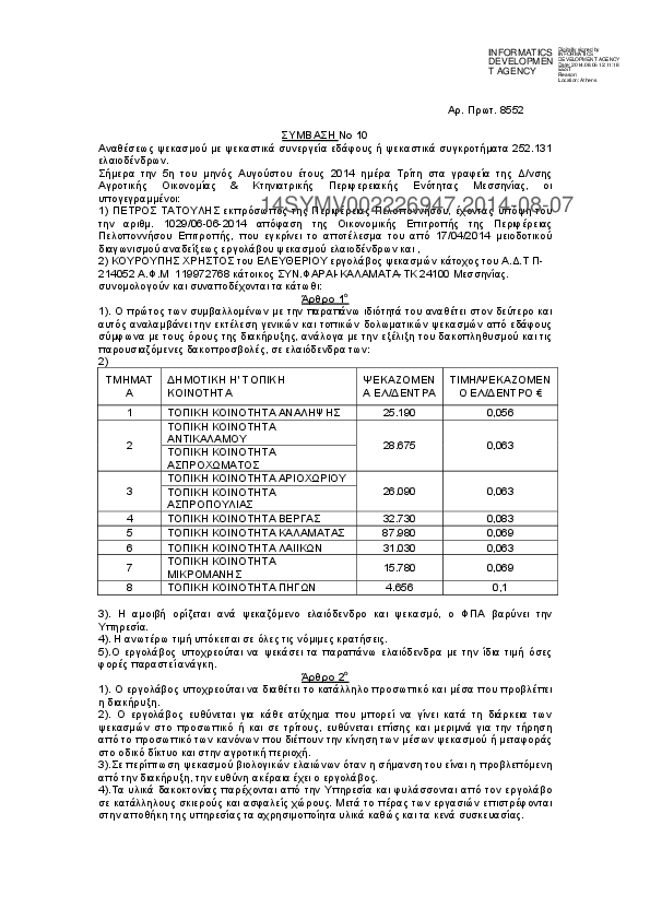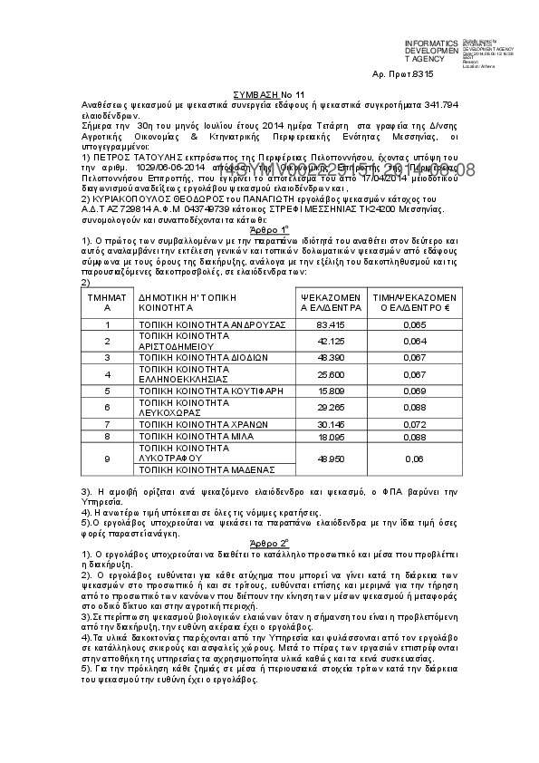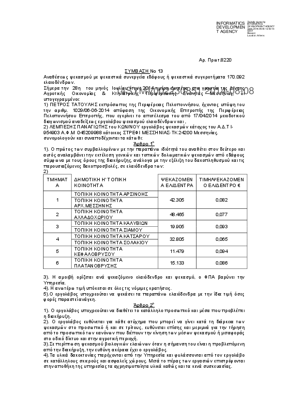 8. Σύμβαση εργολάβων Δακοκτονίας 2014 ΠΕ Μεσσηνίας