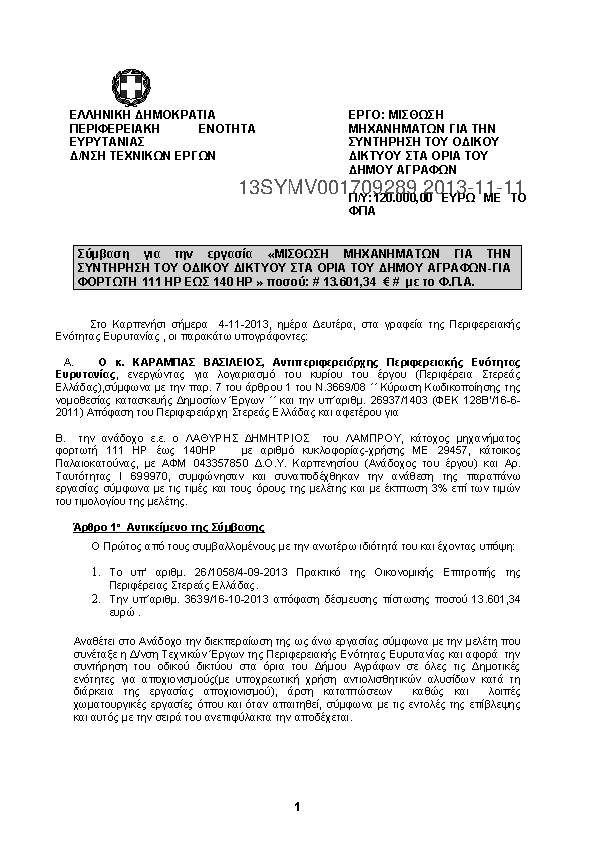3. ΣΥΜΒΑΣΗ ΓΙΑ ΦΟΡΤΩΤΗ 111 HP ΕΩΣ 140 HP ποσού: # 13.601,34 € # με το Φ.Π.Α.