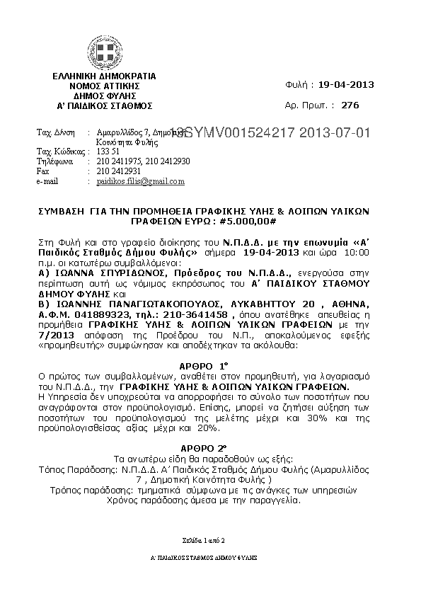 1. ΠΡΟΜΗΘΕΙΑ ΓΡΑΦΙΚΗΣ ΥΛΗΣ & ΛΟΙΠΩΝ ΕΙΔΩΝ ΓΡΑΦΕΙΟΥ