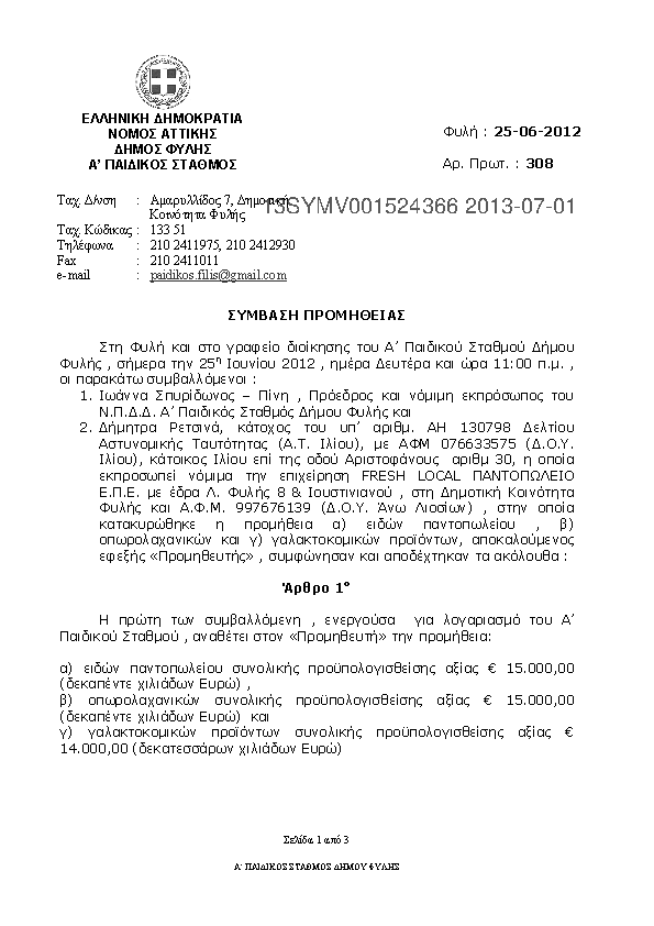 1. Σύμβαση για την προμήθεια περσίδων